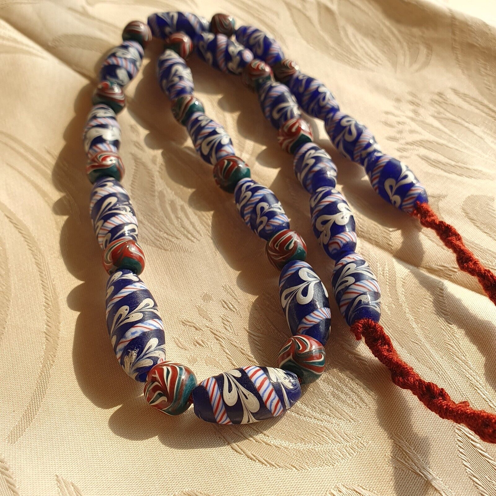Vintage Blue feathers GLASS Beads Beaded Necklace Strand BEADS:APPROXIMATELY 33 PCS Color : Multi Color BEADS SIZE: 22×12MM...