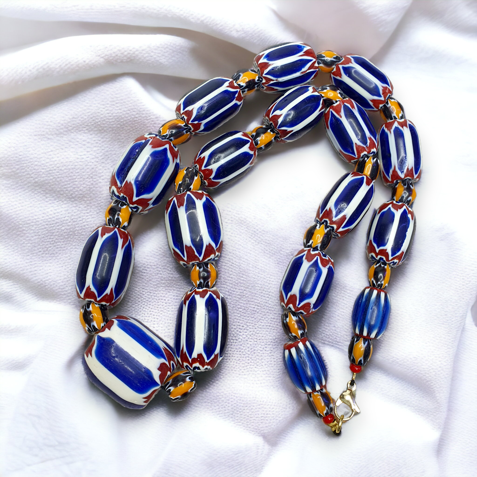 Vintage Chevron and White Heart Venetian Beads Glass Beads Necklace NC-108