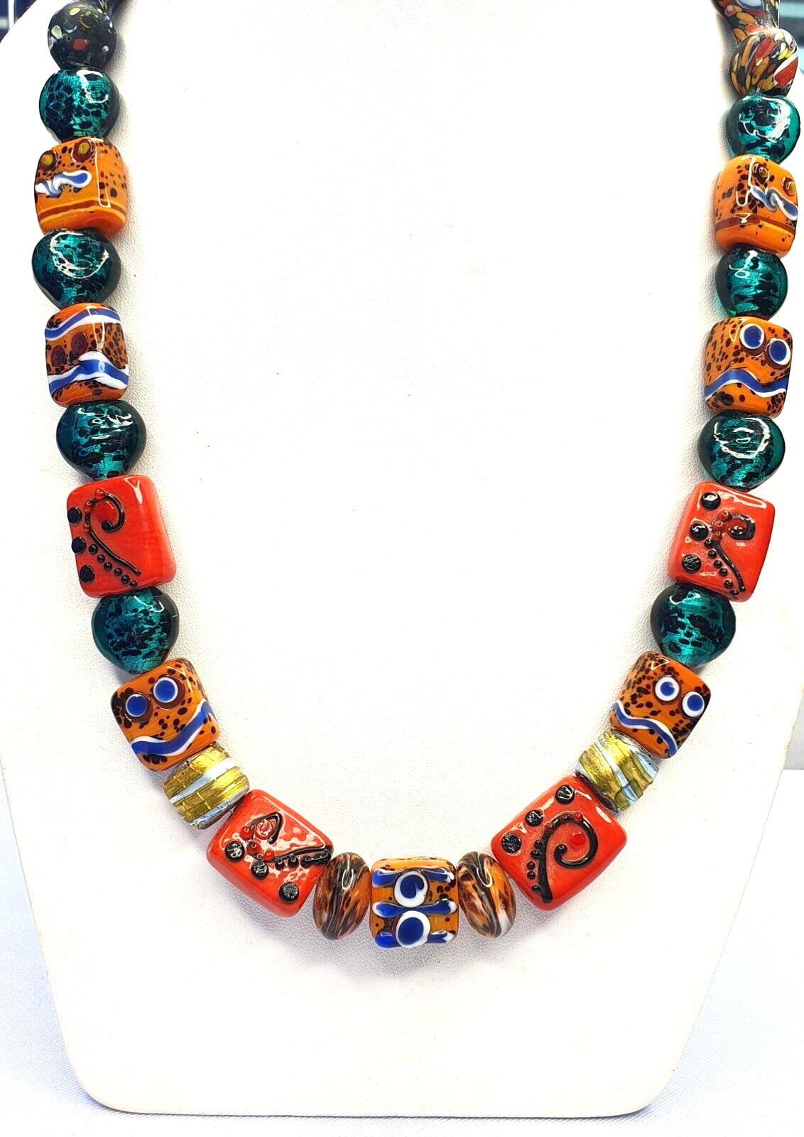 Vintage Czech necklace fancy striped GLASS ART lampworked glass beads