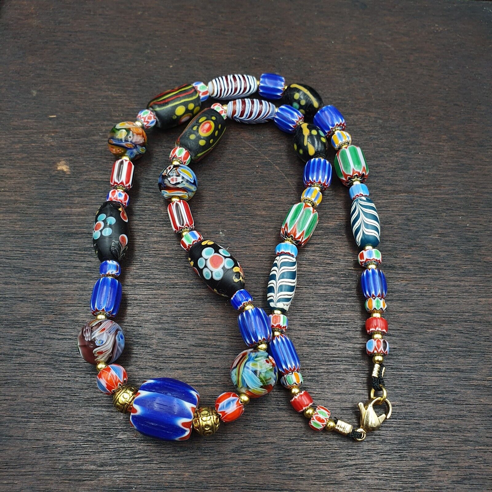 Vintage Venetian Style Trade beads Old Beads Long Strand Excellent condition,  BEADS: 8-22mm Color : Multi Color...