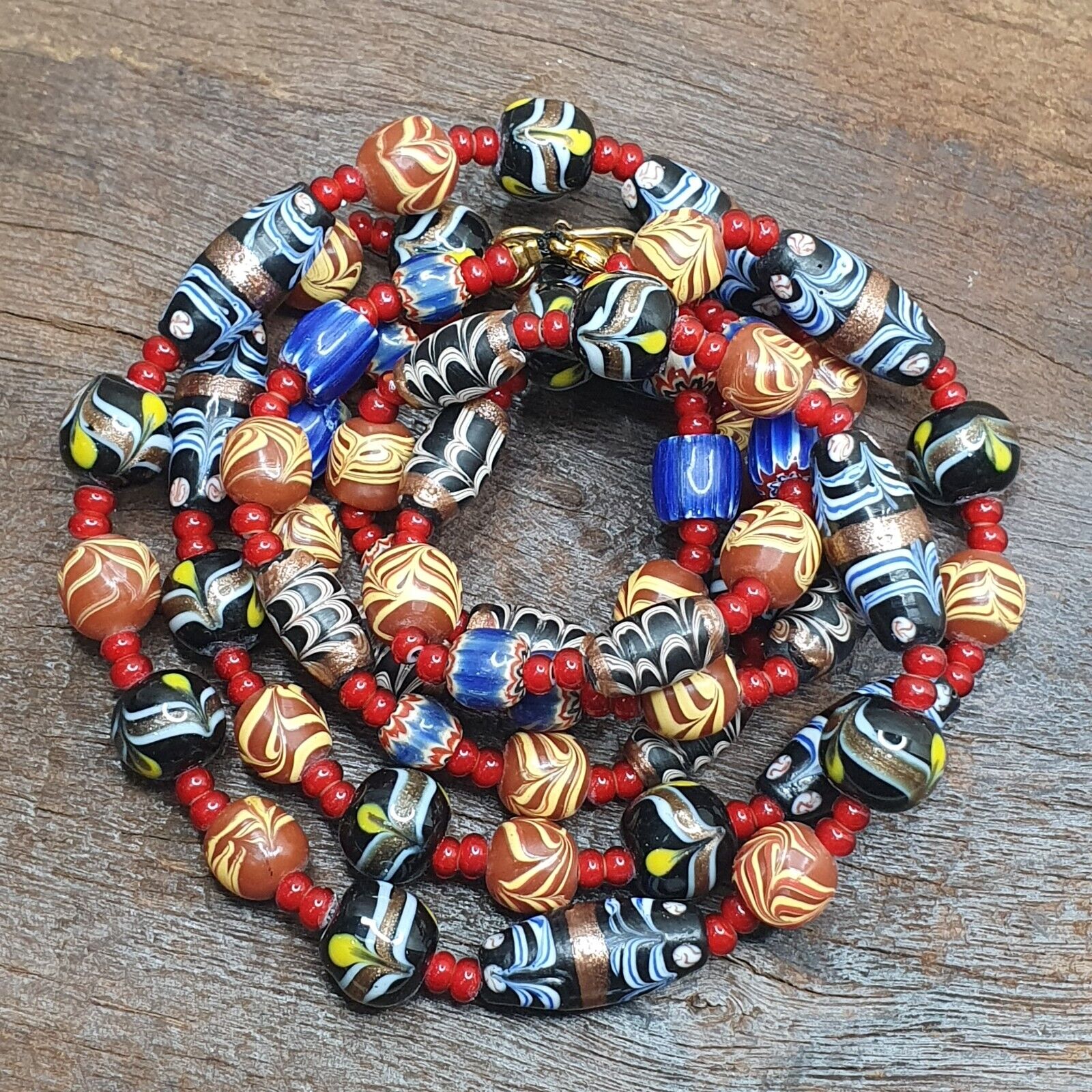 Vintage Fancy Feather Wedding cake Glass Venetian Style Beads Necklace #MX-3