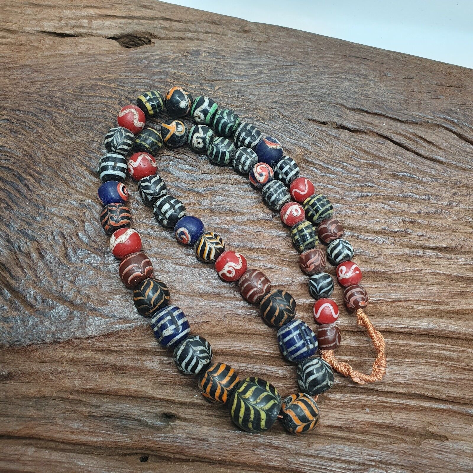 Vintage Feather Pattern Glass: Exquisite Beaded GLASS Art BEADS Necklace
