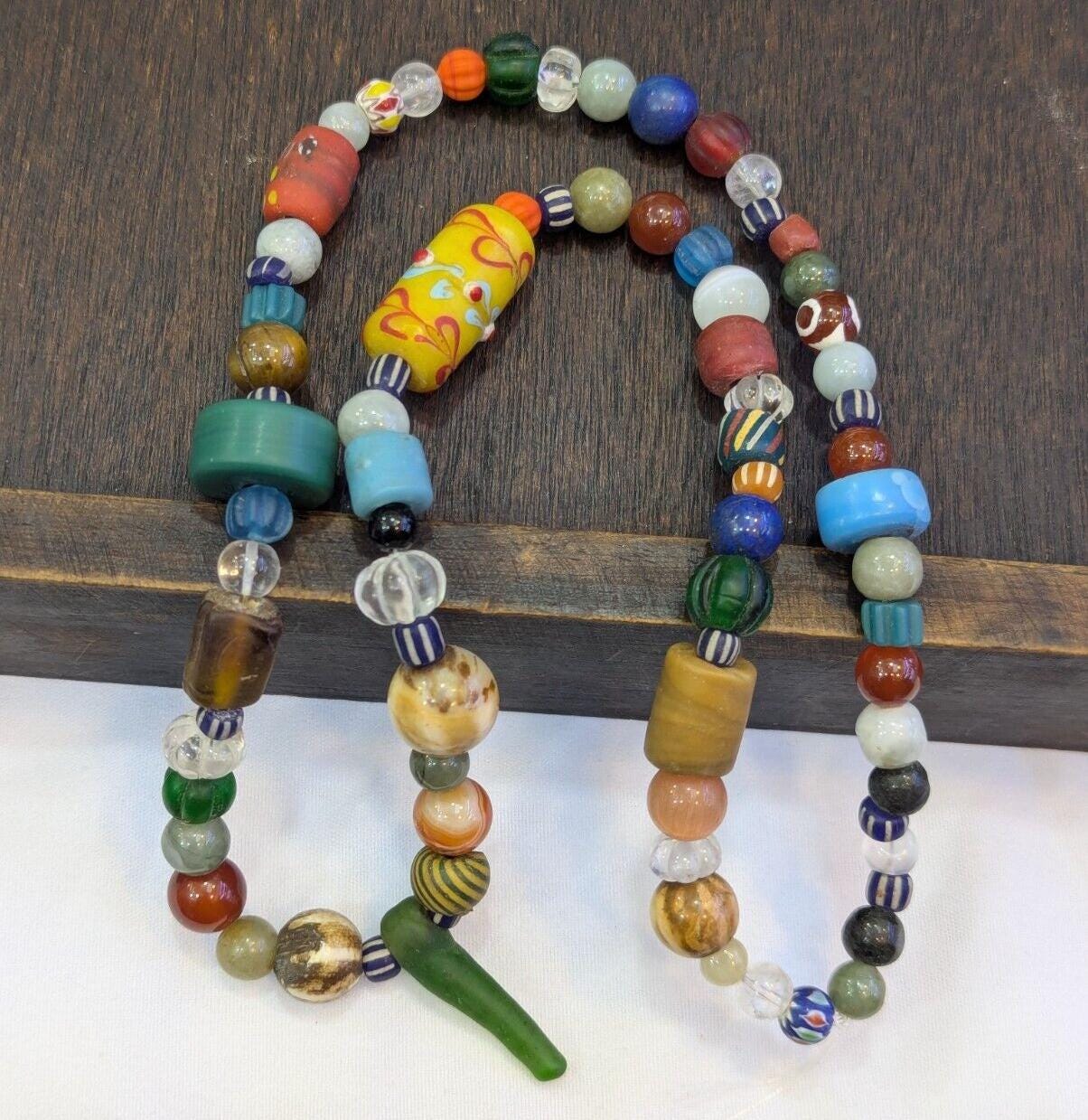 Vintage glass stones crystal mix beads necklace jn-3Gift