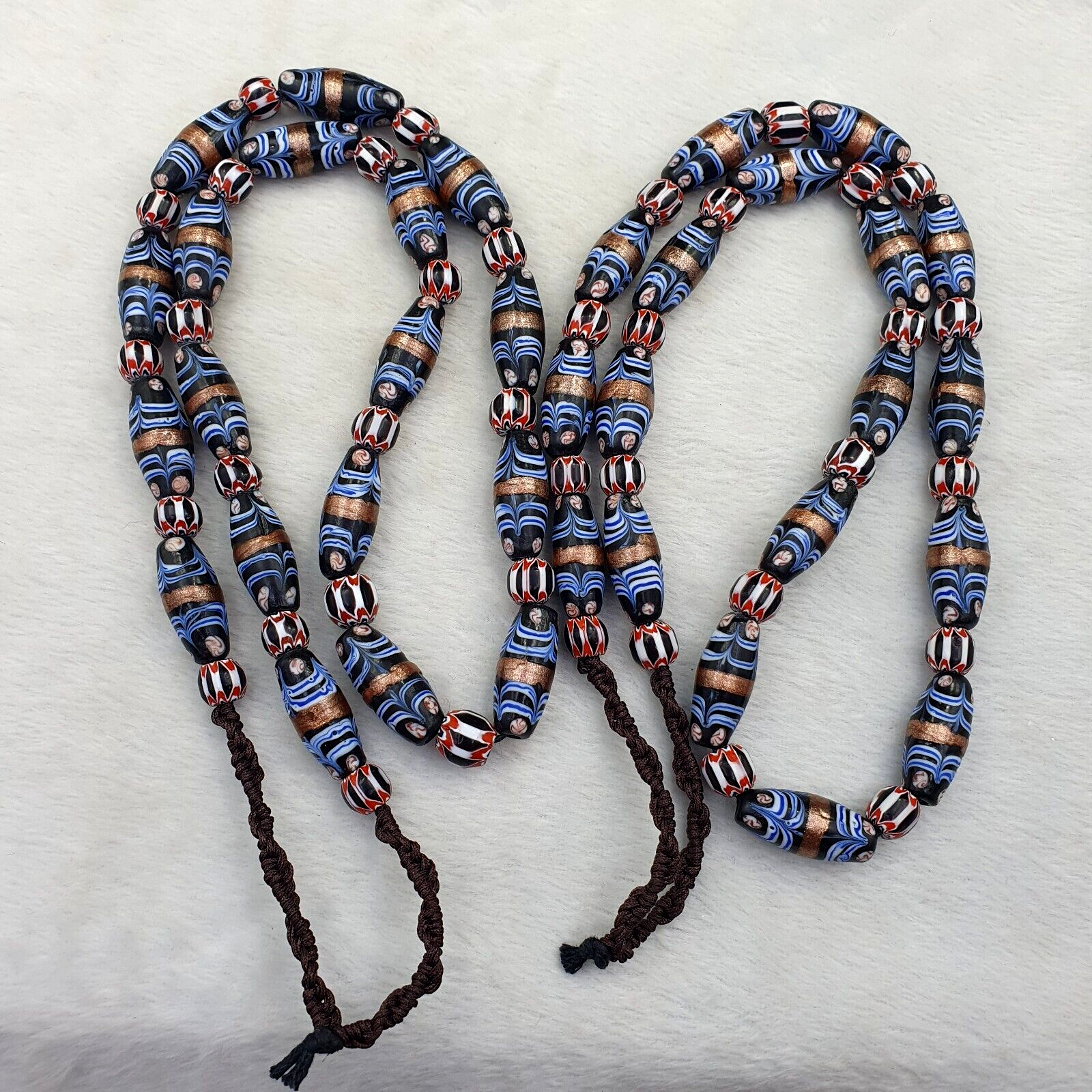 vintage Millefiori Fancy FEATHER & chevron glass beads 25×10 MM | LONG STRAND