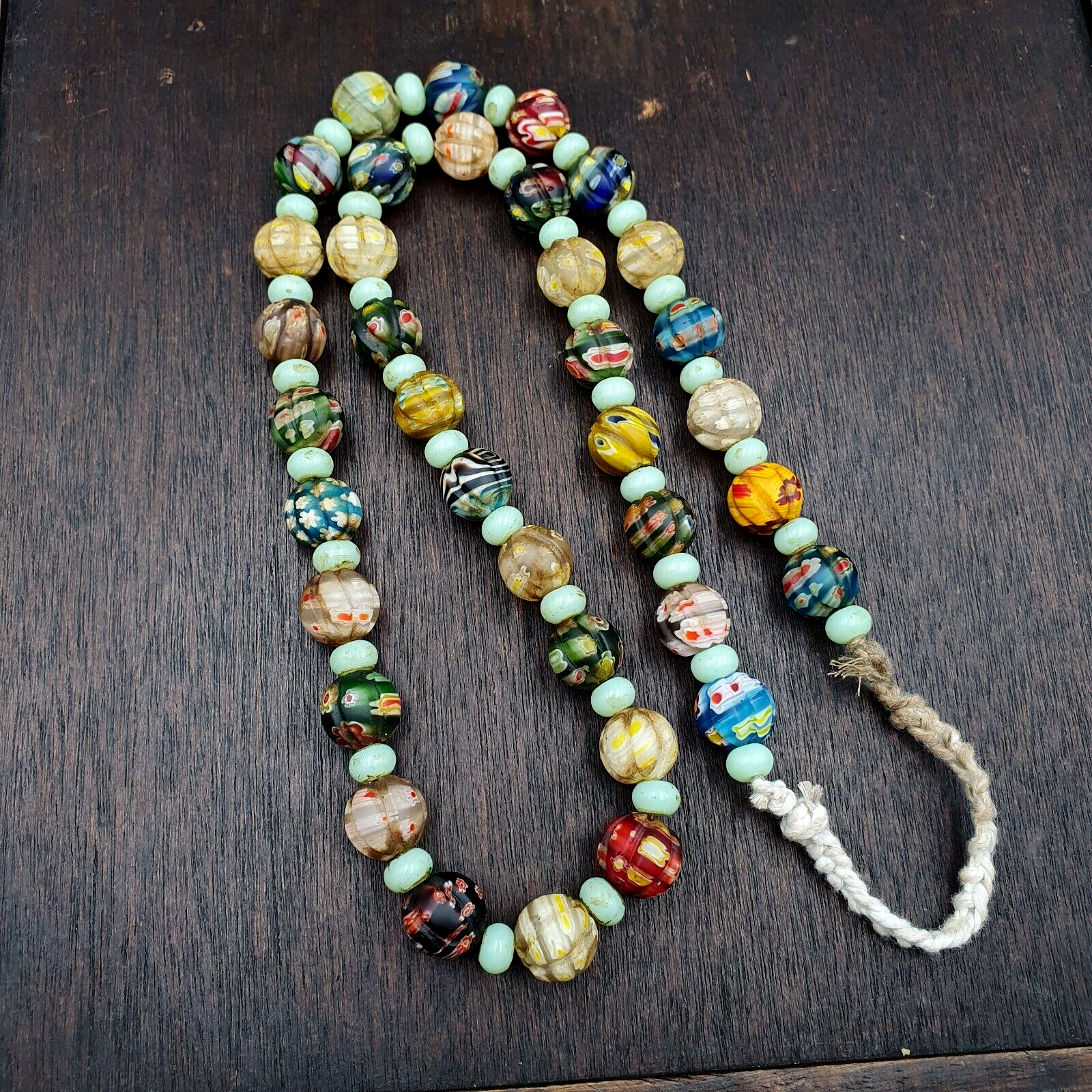 VINTAGE Murano MILLEFIORI Style Melon Glass beads Strand  Shape: Carving MelonStrand Length: 24Inches  Beads Size:13mm,  Excellent condition, ...