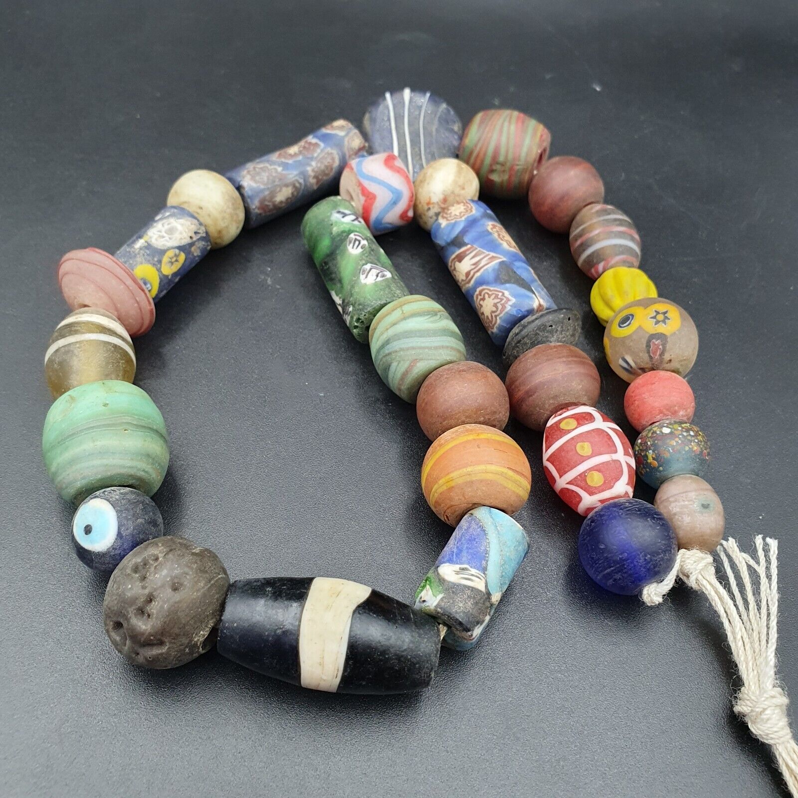 VINTAGE BEAUTIFUL old Multicolor ART Fancy GLASS BEADS Strand necklace.