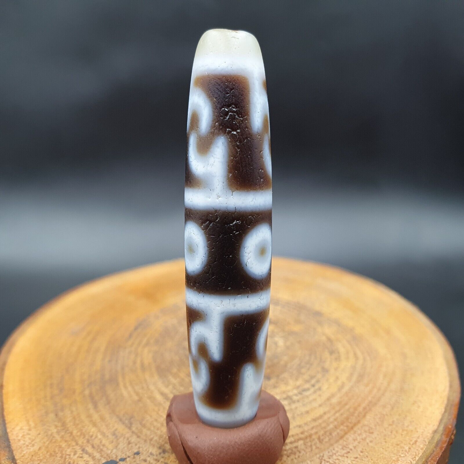 Vintage Old Himalayan Indo Tibetan 5 Eyes pattern Dzi Amulet Pendant Bead B26