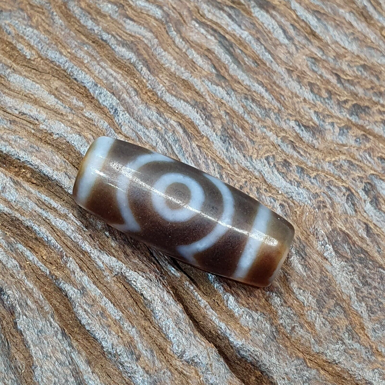 Vintage Old Tibetan 3 eyes in eye Dzi Bead Amulet circle Eyes