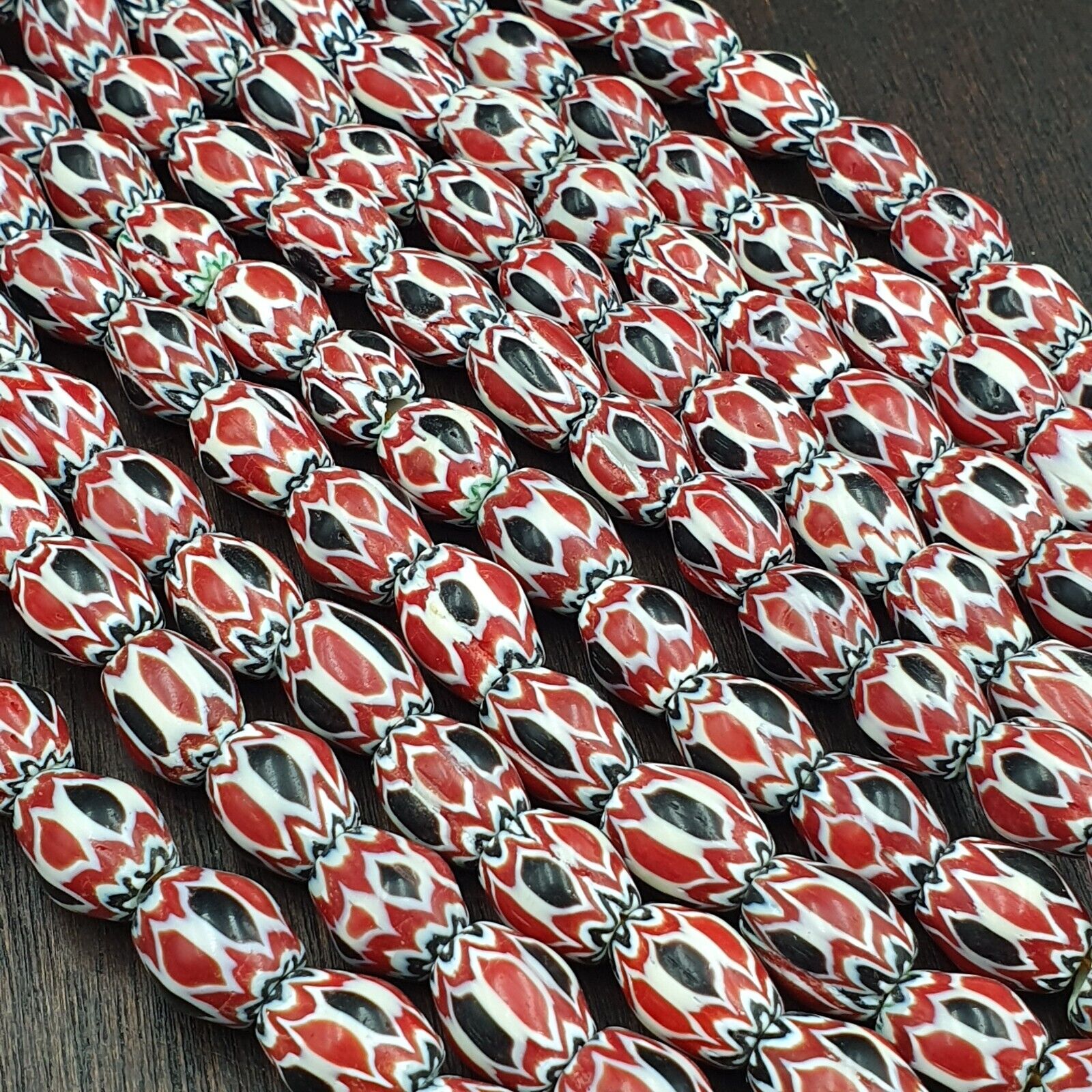 Vintage Venetian African Style Red Black White Glass Chevron Beads Long Strand 11x13mm
