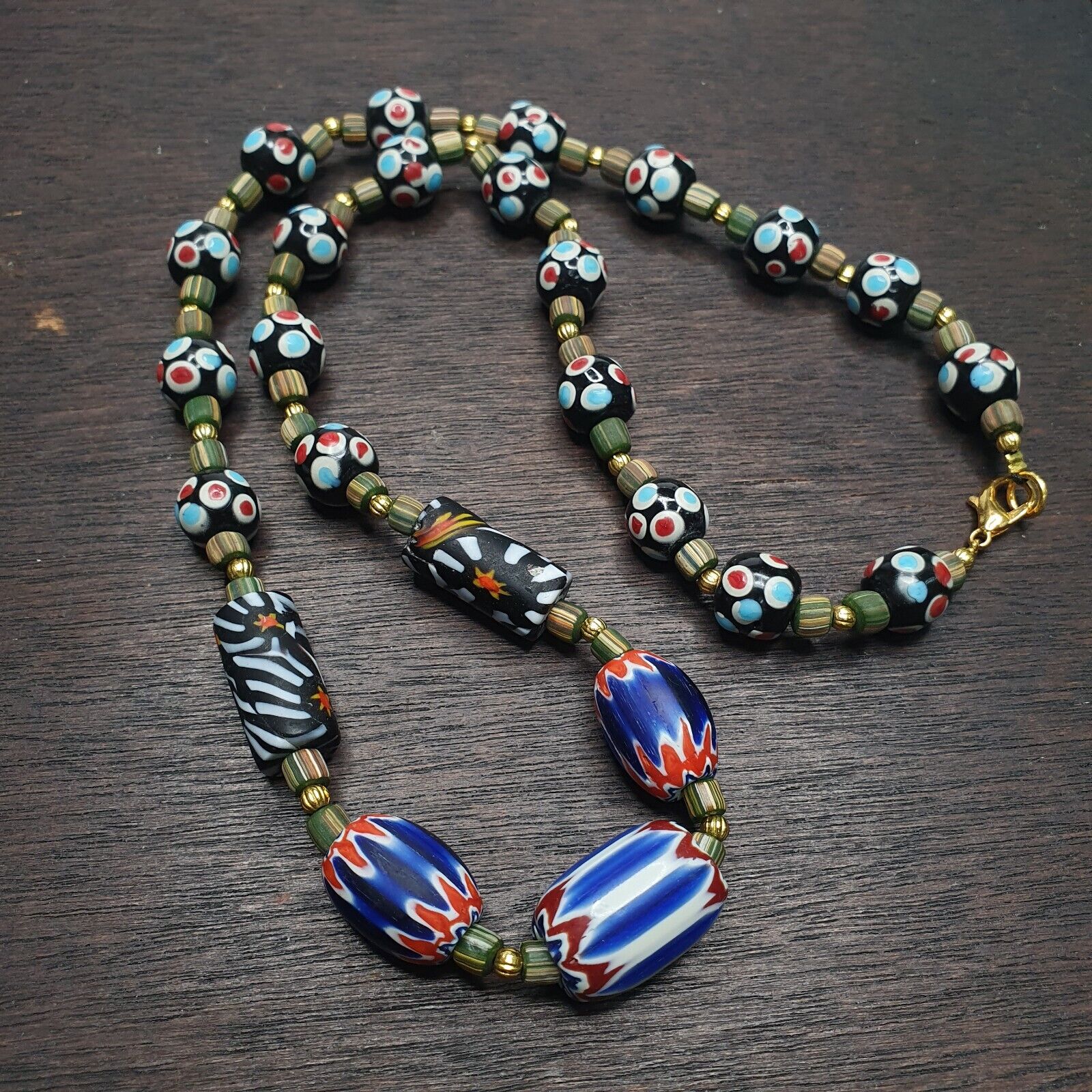 Stunning Vintage Mix Venetian Style Trade Old African Multicolor Glass Beads Necklace