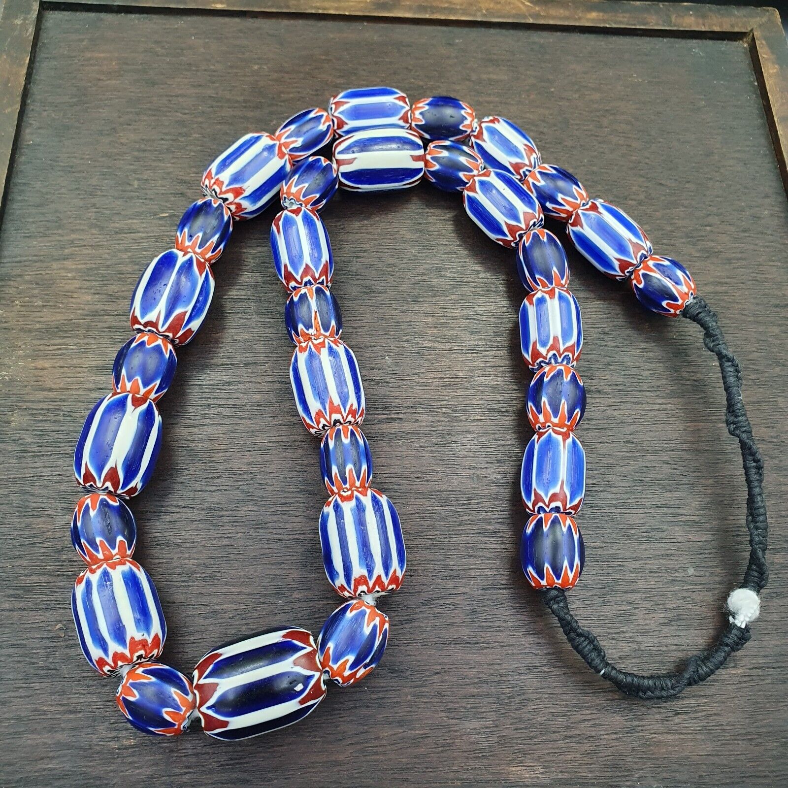 Vintage Venetian Style Trade Beads Blue Chevron Glass Beads Long necklace
