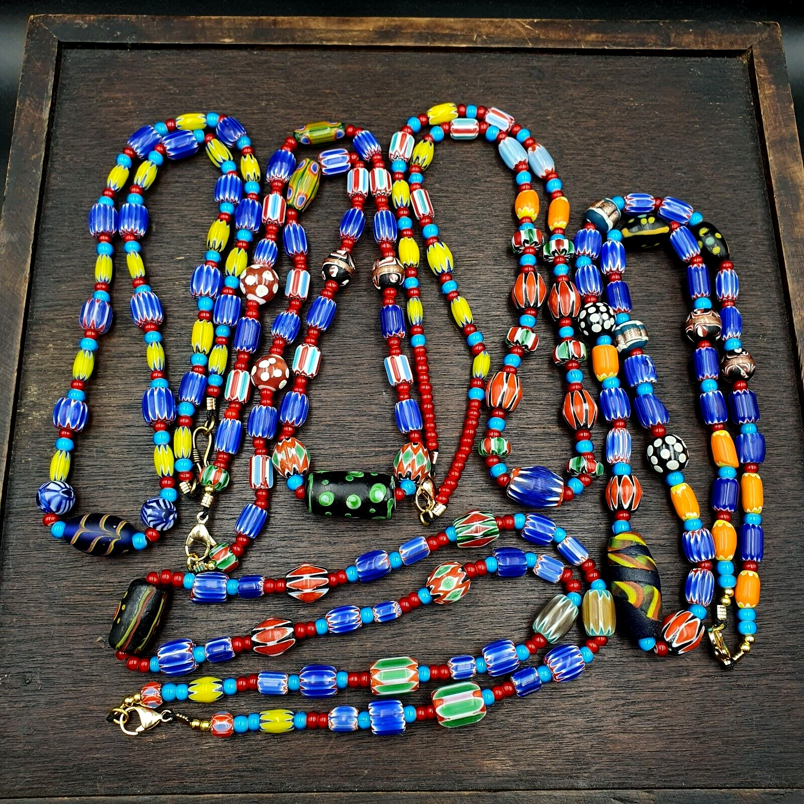 Wholesale 5 pcs Vintage Chevron and White Heart Venetian Glass Beads Necklaces