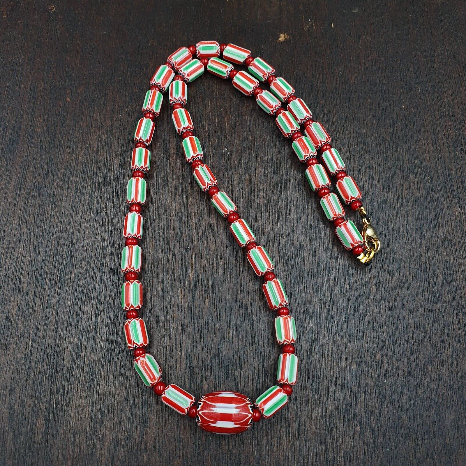 Venetian Style Chevron and White Heart Venetian Beads Glass Beads Necklace Vintage Venetian style Chevron Beads are...