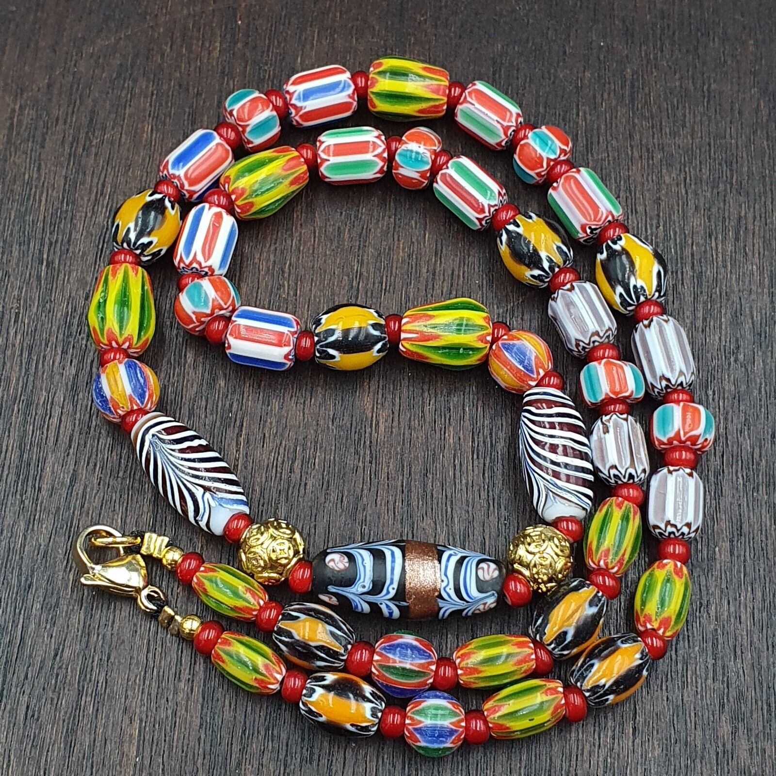 Venetian Style Chevron and White Heart Venetian Beads Glass Beads Necklace Vintage Venetian style Chevron Beads are...