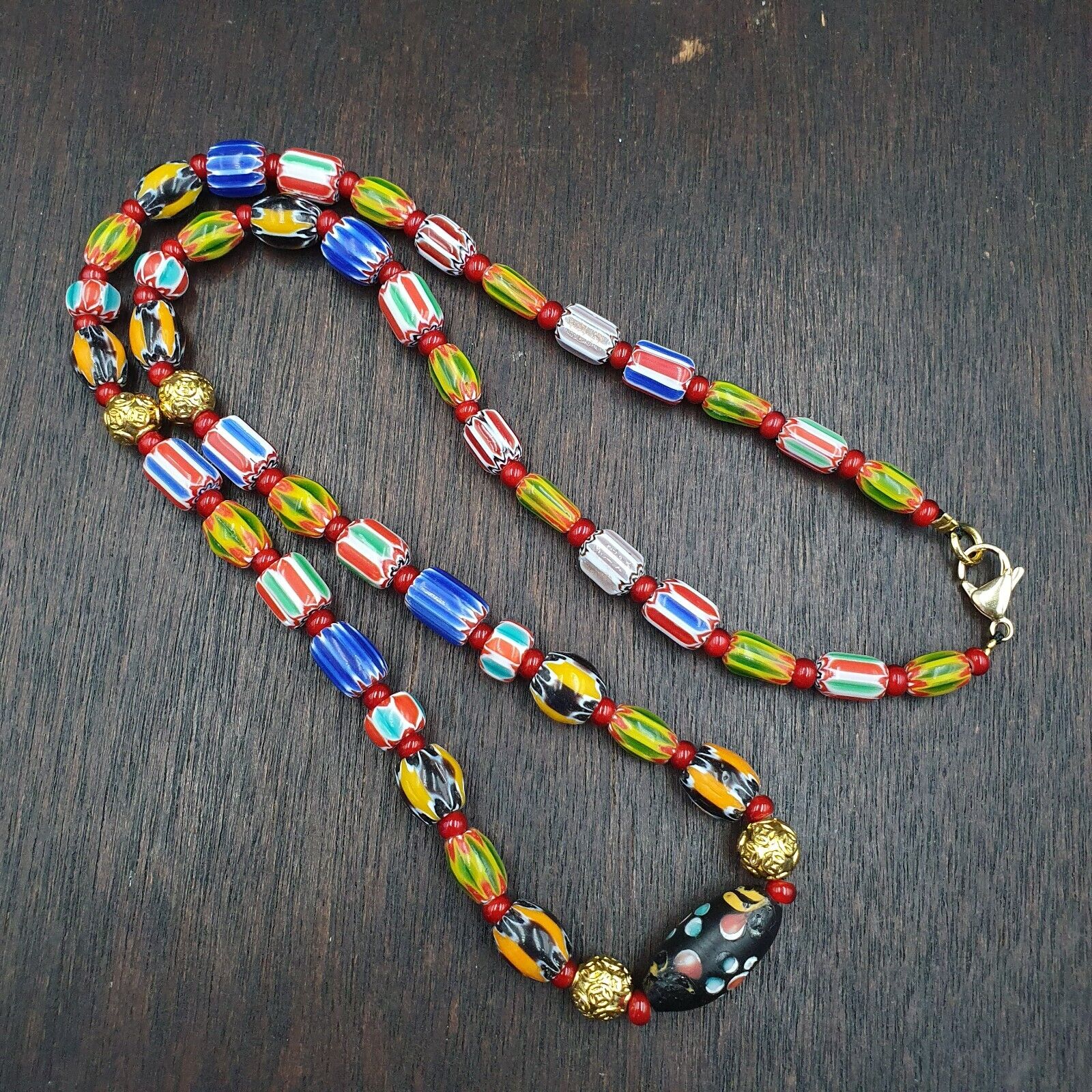 Venetian Style Chevron and White Heart Venetian Beads Glass Beads Necklace Vintage Venetian style Chevron Beads are...