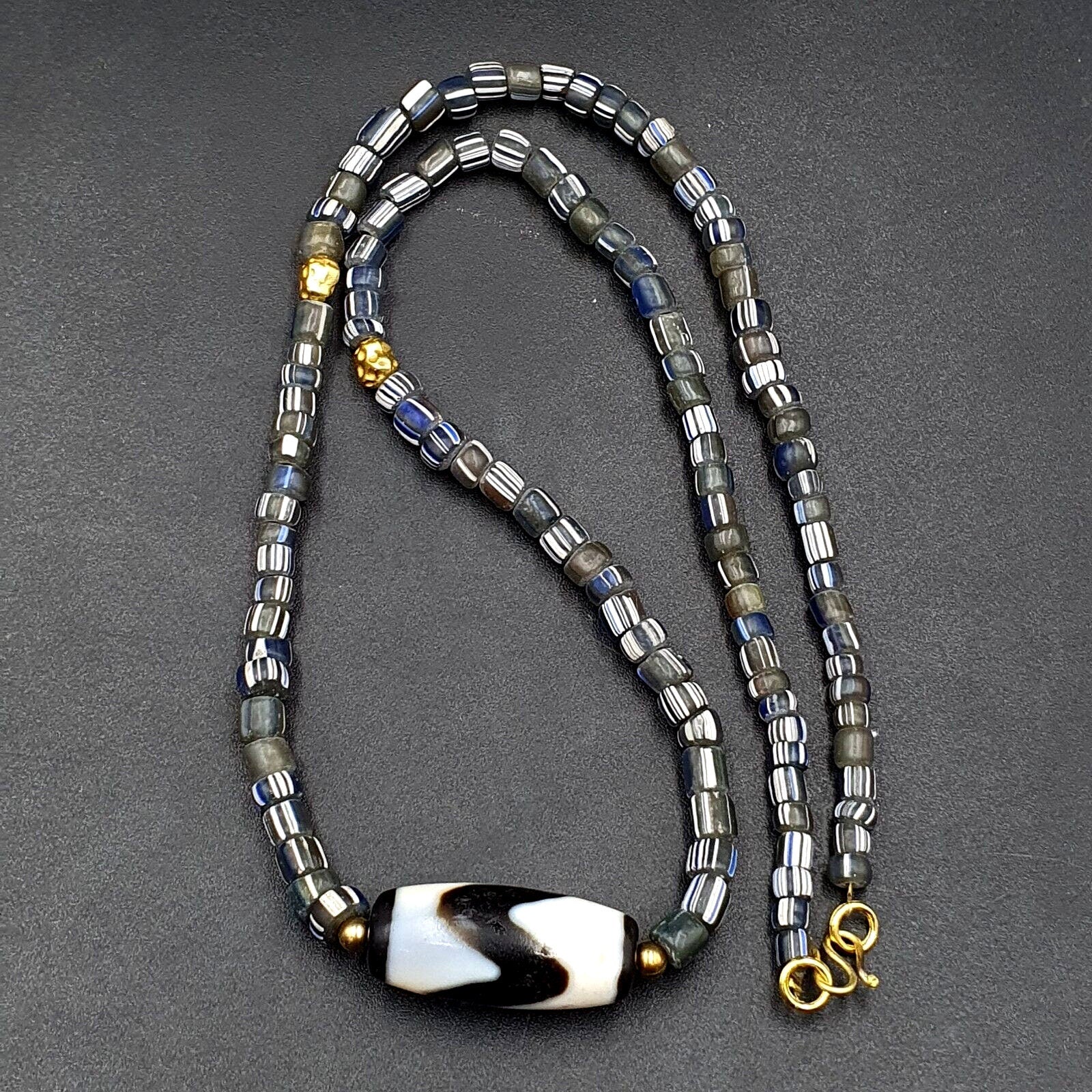 Himalayan indo tibetan beads zigzag line pattern dzi amulet agate beads necklace